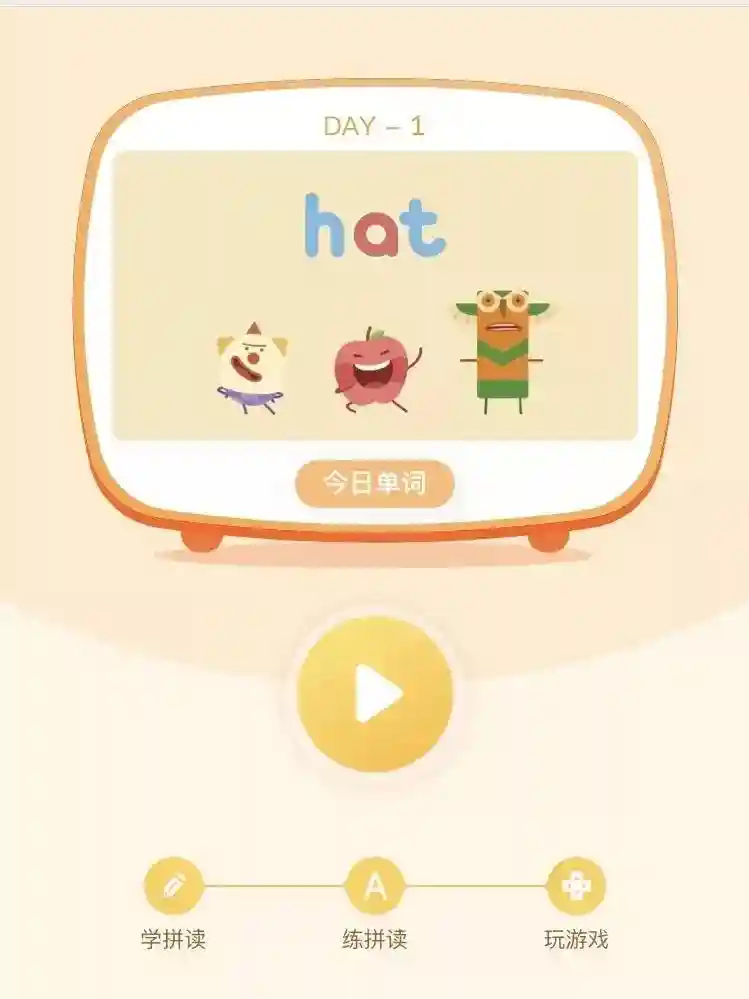 通过以下学习闭环完成单词记忆,学拼读-练拼读-玩游戏。