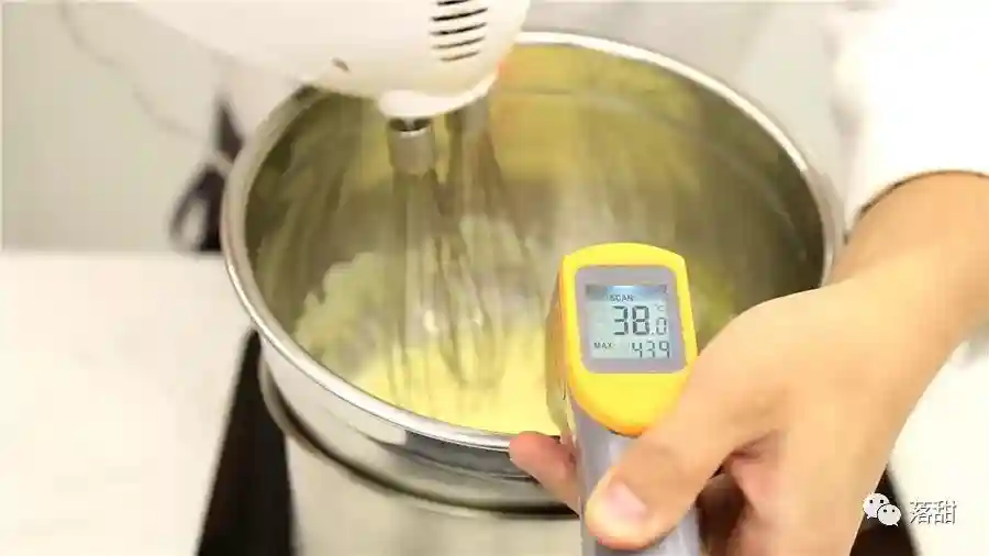 蛋黄与蛋清一起打发,就是全蛋打发。因为含有蛋黄,所以须在一定的温度条件下才能打发成原体积的数倍(详见落甜原理通讲第131期)