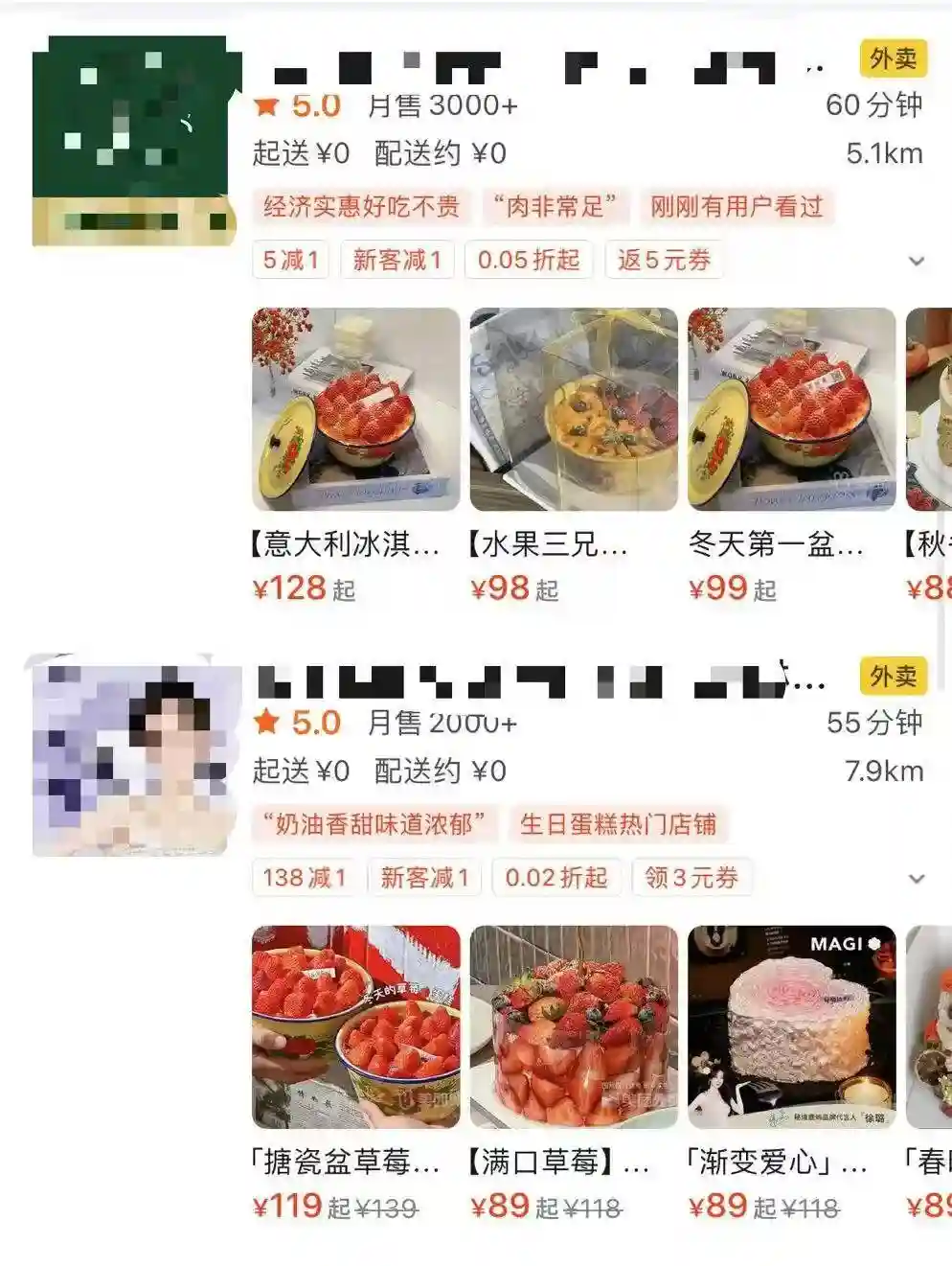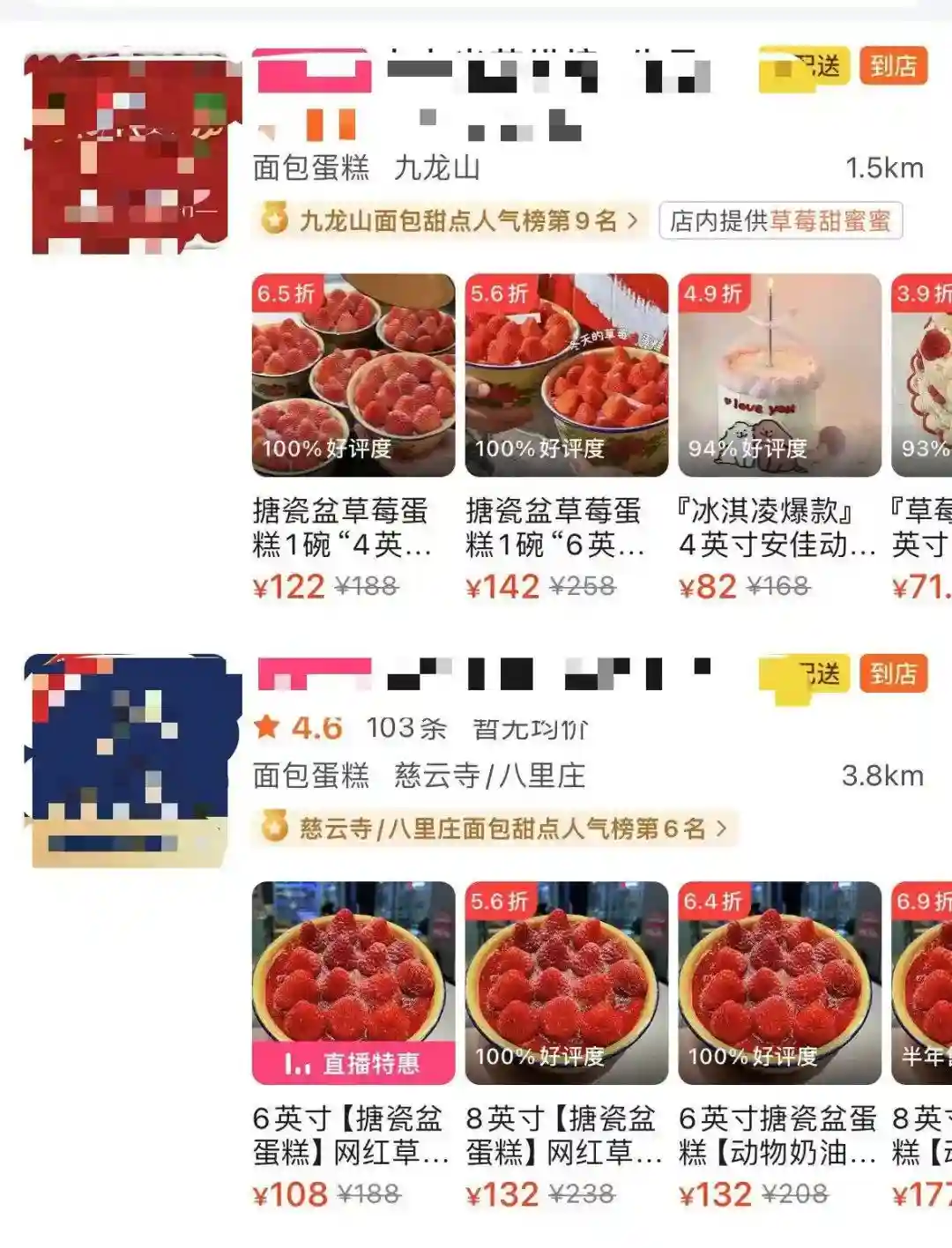 小编在外卖平台上搜索发现,同款网红蛋糕北京在售的店家也不在少数,售价一般在100多元。