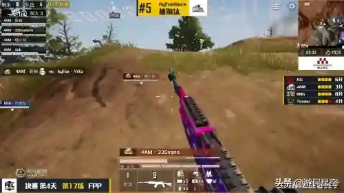 第五场比赛TPP模式沙漠地图,航线从拖车场至垃圾站。AgFoxBlack在这场比赛中站了出来,他们本场比赛选择了从外围直接推边,先是解决了挡在前面JCR,接着联合了4AM包夹了FPX将其淘汰。RNG孤狼自然灿也在过马路的过程中遭到4AM的阻拦,无奈离场。4AM与AgFoxBlack三对三,双方各倒2人,但AgFoxBlack·XiYan从侧翼找到4AM·晓小剑背身,从高点将其淘汰,成功帮助AgFoxBlack吃到蛋糕。