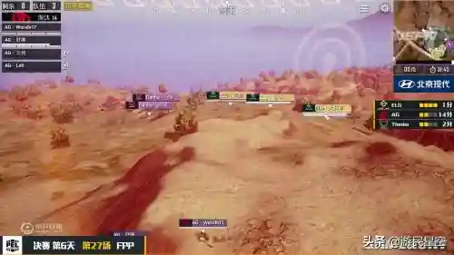 第二场比赛FPP模式沙漠地图,航线从无花果镇附近至青铜城附近。场上AG、4AM、RNG以及Tianba四支队伍进行角逐。4AM被刷在圈外,在进圈过程中,2人被AG淘汰。随后,四方陷入僵持,AG率先移动,强行围攻4AM剩余2人,并轻松将其淘汰。接着,Tianba在房区遭到了房区外RNG和AG的联合堵截,导致其无法动身。随着刷圈的临近,Tianba不得不正面强突RNG,但在对枪过程中RNG更胜一筹,以1人淘汰1人倒地的代价团灭RNG。这时,身居高地的AG并没有给RNG的机会,满编4人强势下山团灭RNG,拿到第二场蛋糕。