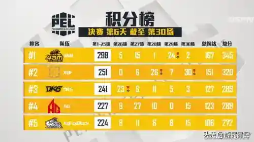 最终战果经过30场比赛,4AM以345分的成绩取得了PEL和平精英职业联赛的冠军,XQF以25分之差屈居亚军,DKG以289分的成绩获得季军。