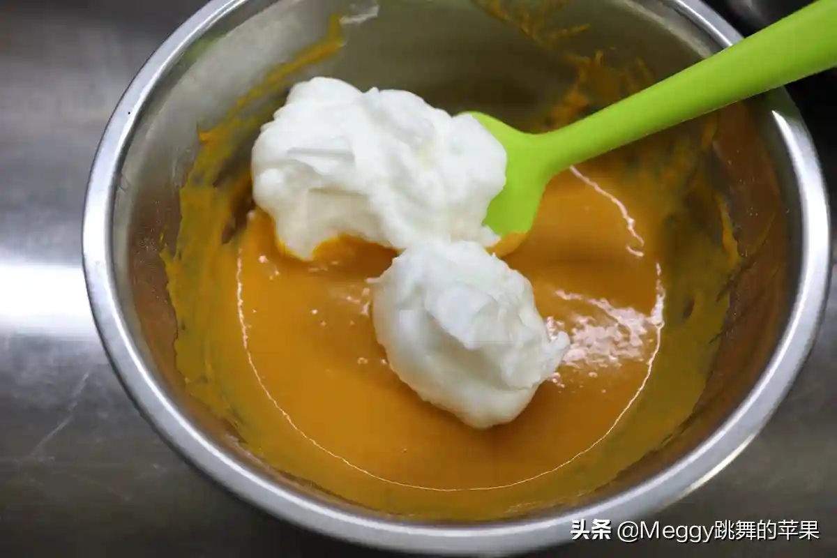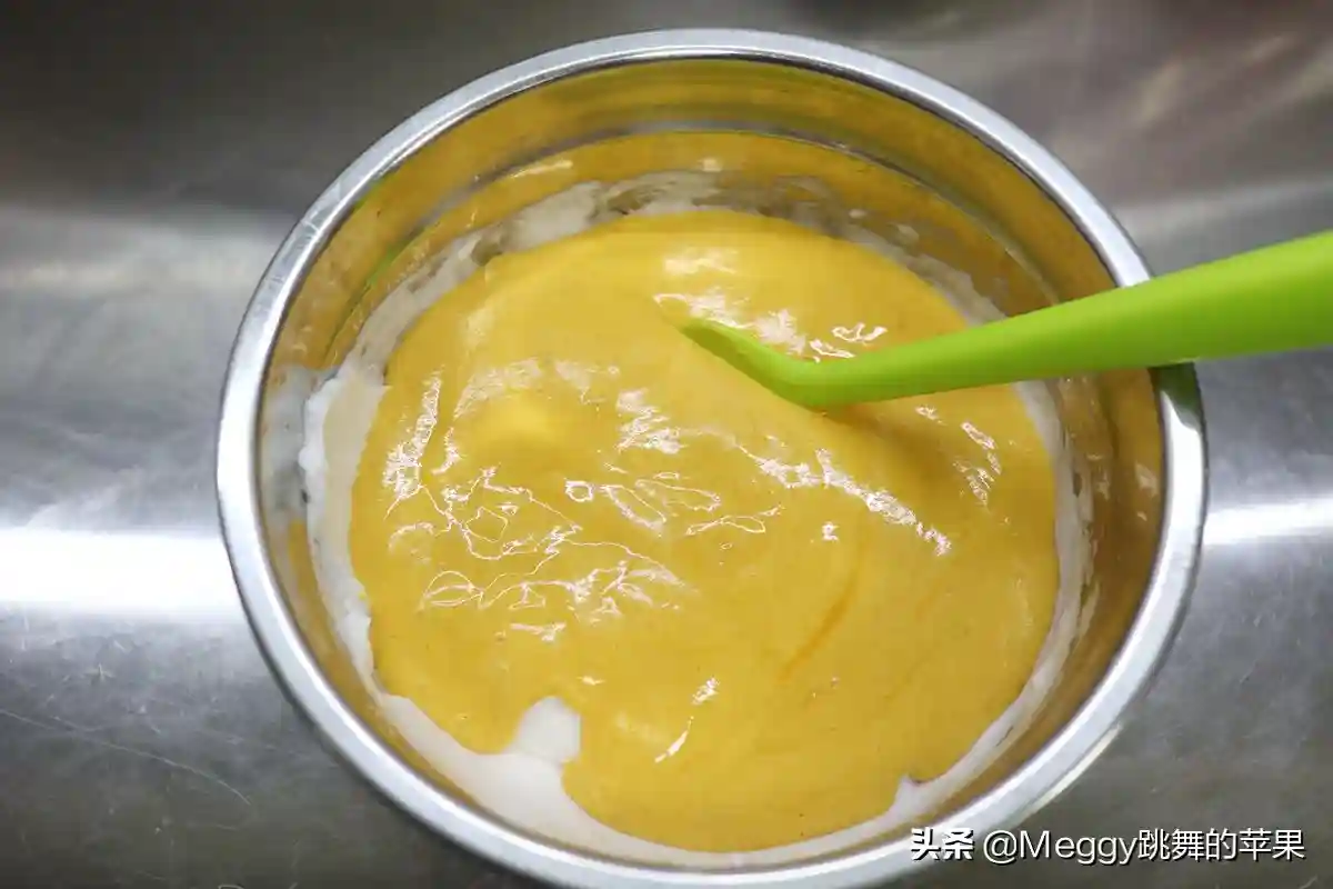 10.取1/3蛋白糊入蛋黄糊中;