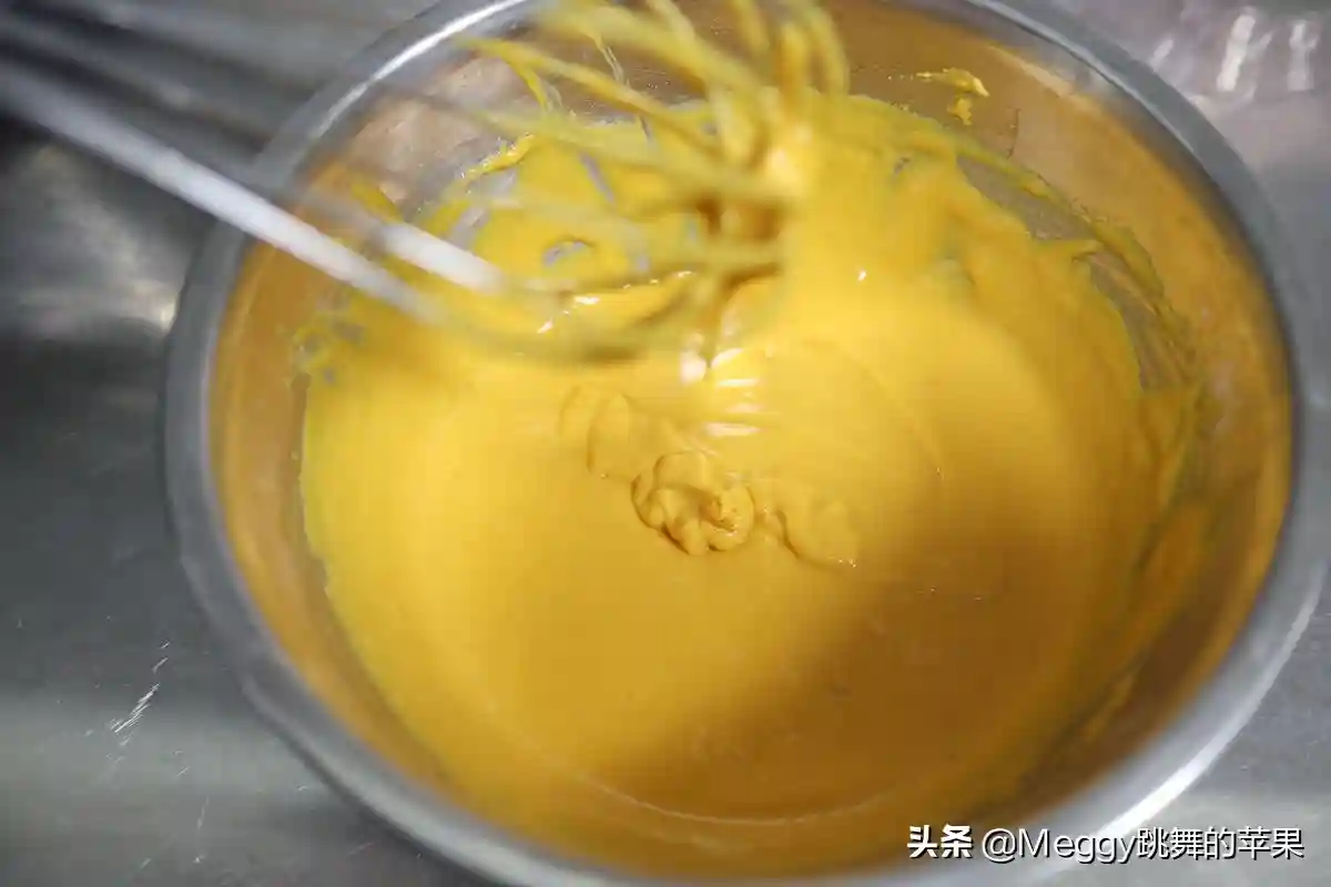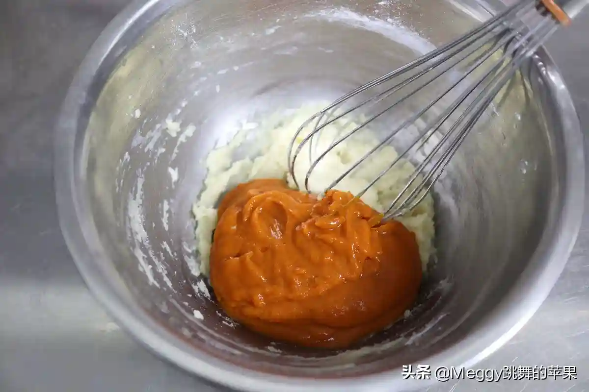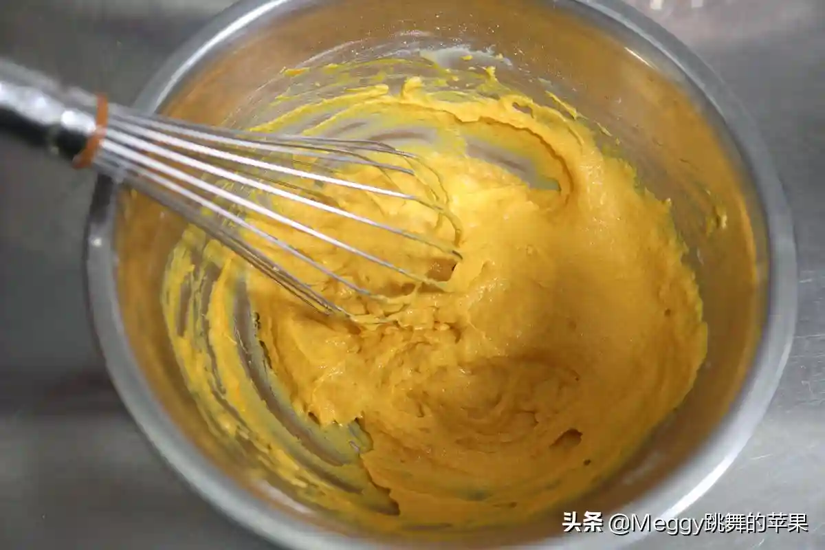 4.南瓜泥称重倒入面糊中;