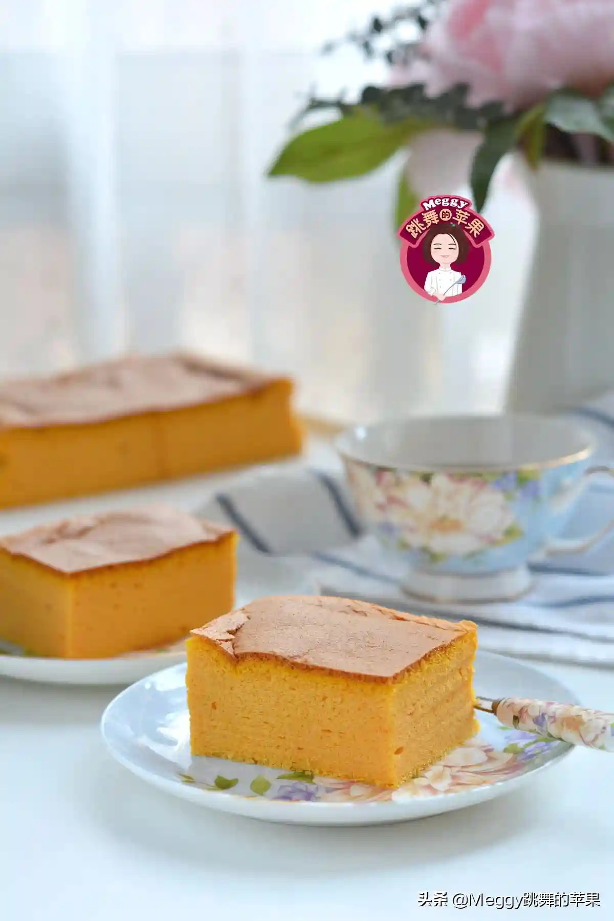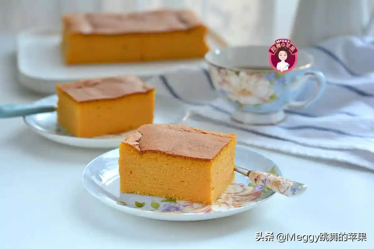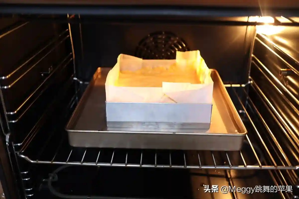 2.这个是用的水浴法制作的,蛋糕比较湿润,冷藏后有轻乳酪蛋糕的口感;如果不铺油纸,不用水浴法,就是普通戚风蛋糕的口感,加热温度和时间可调整为上下火140度,70-80分钟。