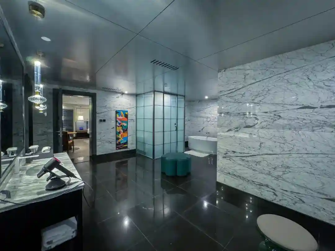 退房当天,前台带领参观了酒店的套房,一个是卧室与浴室都有超大的行政豪华套房,布局较为方正和传统,适合领导及重要贵宾入住。
