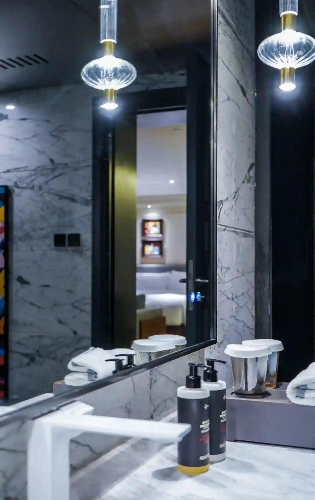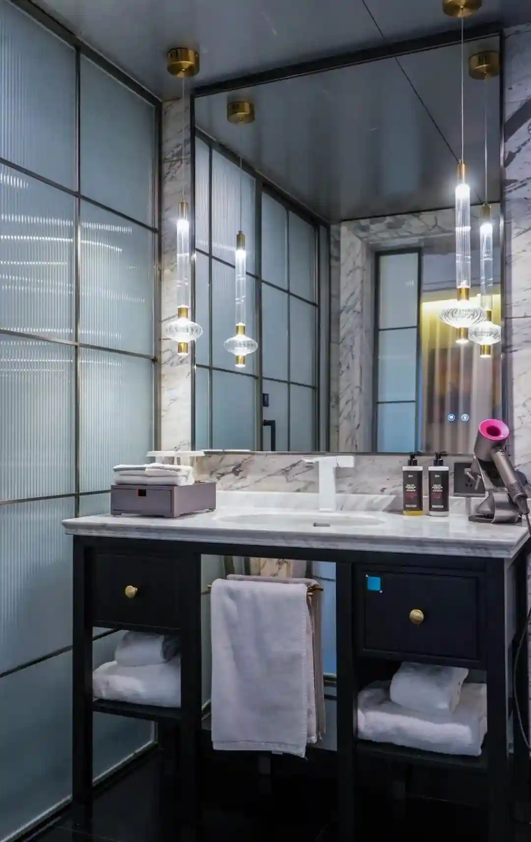 浴室方面,标配戴森吹风机和智能马桶,同时酒店升级了洗护备品为大瓶装馥马尔木兰沁夏系列,香味恰到好处,深受客人喜爱和好评。