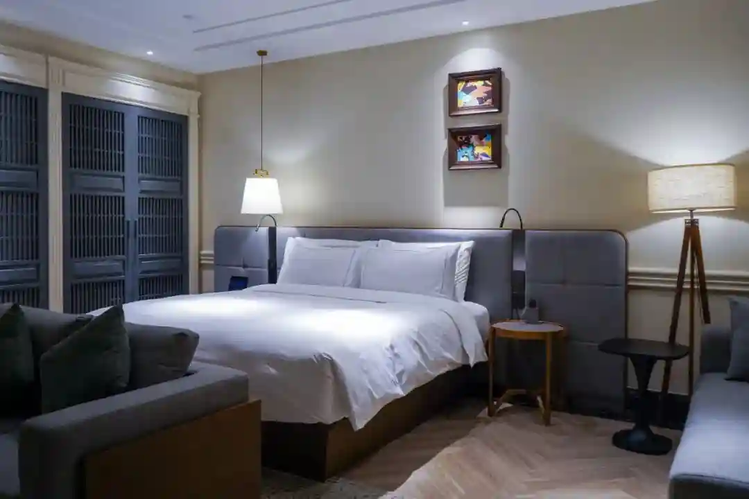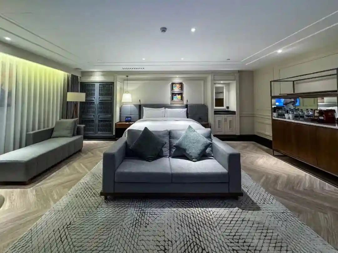 酒店仅配置有32间客房,基础房就有着45平米起跳的面积,在此区域实属难得,部分套房的面积甚至在本区域同类型酒店中是最大的。受到了外建筑格局的影响,更有布局不规则的神秘客房,让每一次入住有了“开盲盒”的惊喜感。