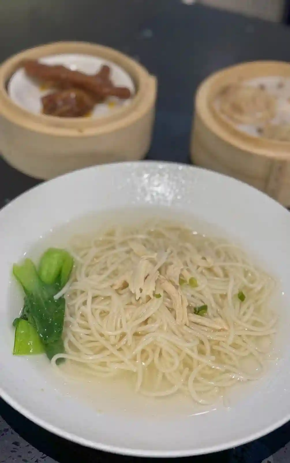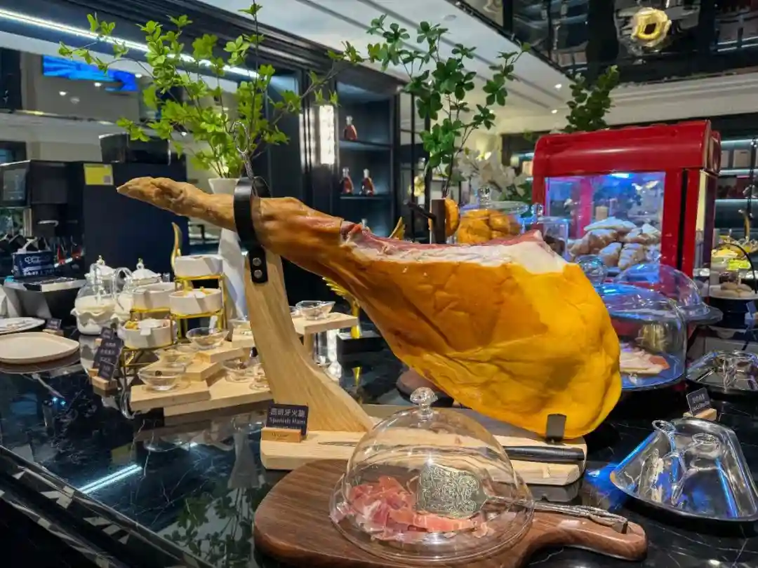 酒店的早餐位于前台一侧的区域,采用半自助的形式,沙拉、水果、火腿、面包等自取,同时每日为客人提供精选单点菜单且每日更换,比如我在的两天早餐就有鸡丝面、牛腩面、凤爪、烧麦等可供选择。