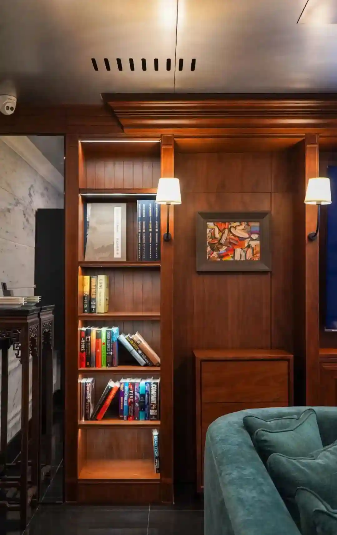 用餐区域相邻的房间内,有着精选藏书和更为私密的氛围,如需要开小型的会议或者在这里短暂休息都是不错的选择。