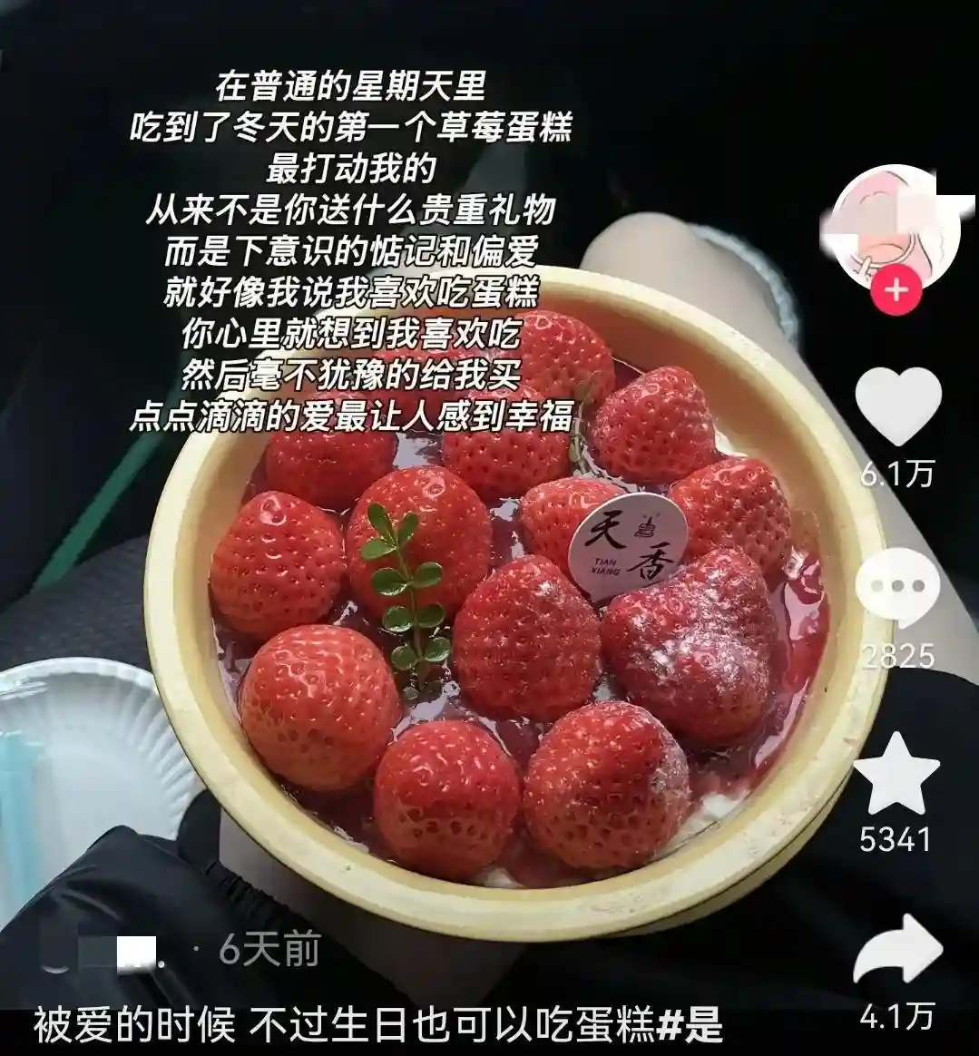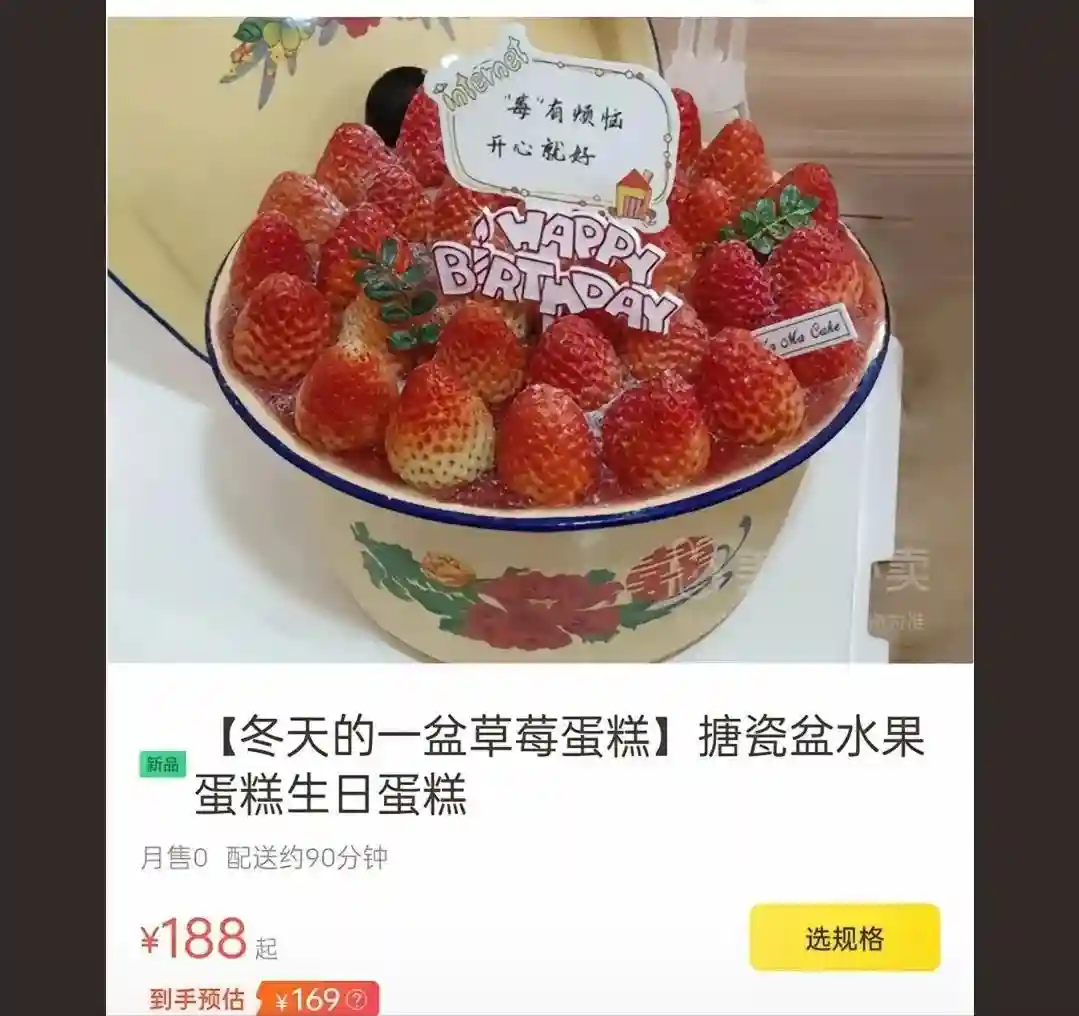 这草莓蛋糕,价格可不便宜。从几十块到几百块都有,关键是还搭上个“盆”。商家就会玩情绪价值,给蛋糕贴上“爱情”“友情”这些情感标签,价格就翻倍了。这蛋糕是用金子做的吗?
