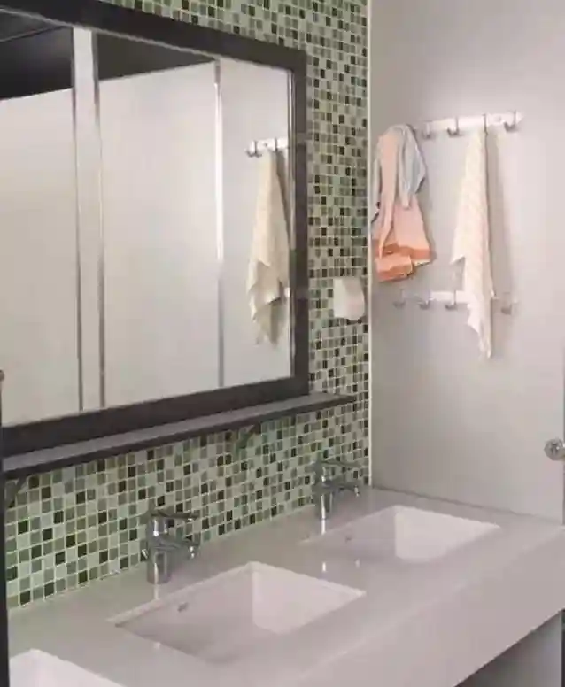 配置:配有空调、洗衣机、独立卫生间。宿舍为每个学生提供一套桌椅,有太阳能热水器,宿舍安装空调,有两间公共厕所。新宿舍楼设计8人一间,面积为30.45平方米,共计可提供2000多个床位,配备空调、洗衣机和9.45平方米的独立卫生间。