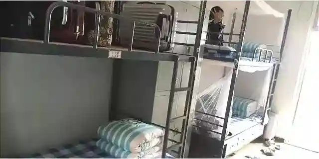 配置:上下铺,独立卫生间,宿舍内无桌子,有铁柜和木柜,内有隔板可以分两层放东西。有洗衣房,有桌子,25平方米标准带阳台的学生宿舍全部配备了空调、太阳能热水器(一年四季全天候供应热水)。