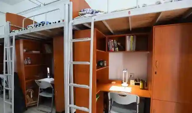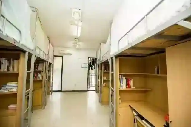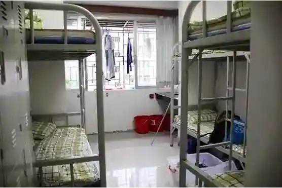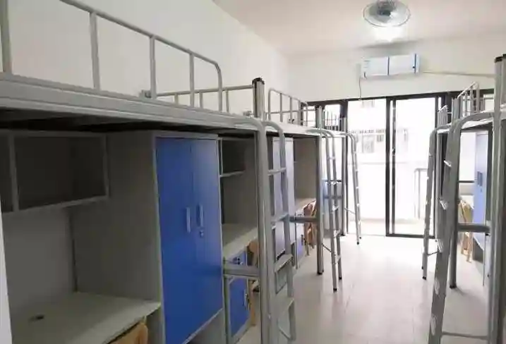 配置:所有宿舍内均配备独立卫生间和浴室,寝室外也有公共浴室及洗手间。每栋宿舍楼均配有多台免费洗衣机。新宿舍都有一个生活阳台,配备独立储物柜、六张课桌和三张上下床。6张上床下桌构成的床铺,左右侧各三张,中间是直通阳台的通道。