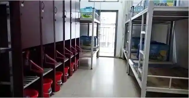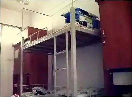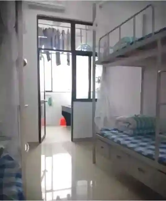 配置:铁质上下铺、独立阳台、楼层设置了公共洗浴、洗衣机。每个宿舍独立阳台,还配一个晾衣杆。宿舍的独立卫生间还是24小时热水。此外每层楼还有一间公共澡堂。