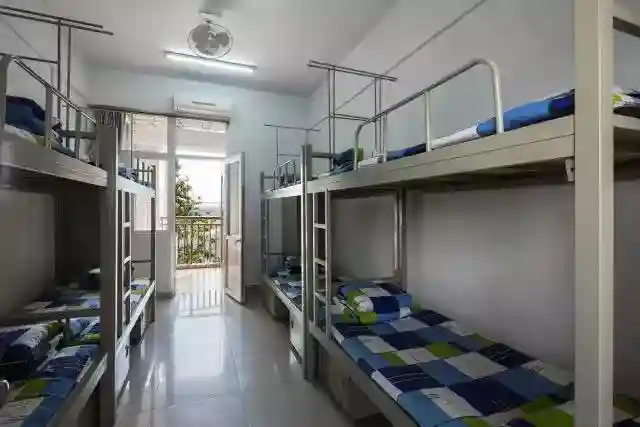 布局:6-8人/间,3张上下铺和2个上铺下桌。