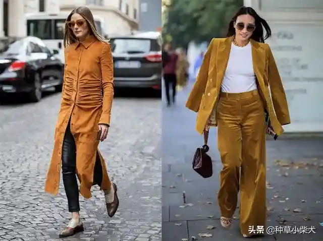 左图:将烘烤过的琥珀色长衬衫,和黑色紧身裤叠穿,营造出一种别致的造型。选择麂皮材质、皮革材质等独特材质,营造立体效果和时尚感。