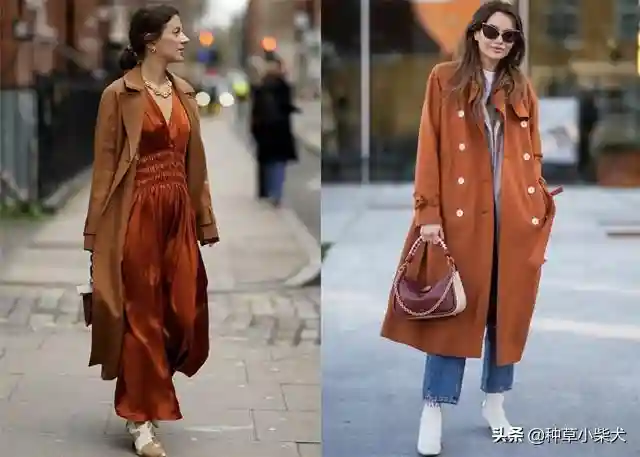 右图:如果秋天穿搭经典的风衣,为什么不试试这款烤橙色呢?最大的特点是既可以享受时尚感,又可以轻松混搭。就算搭配休闲的牛仔裤,也可以穿出时尚协调感。