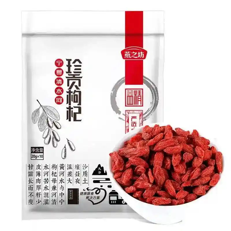枸杞大小均匀,果形长扁,白尖明显。嚼食甘醇,泡水煲粥煮汤,老少皆宜。独立小包装,方便拿取。