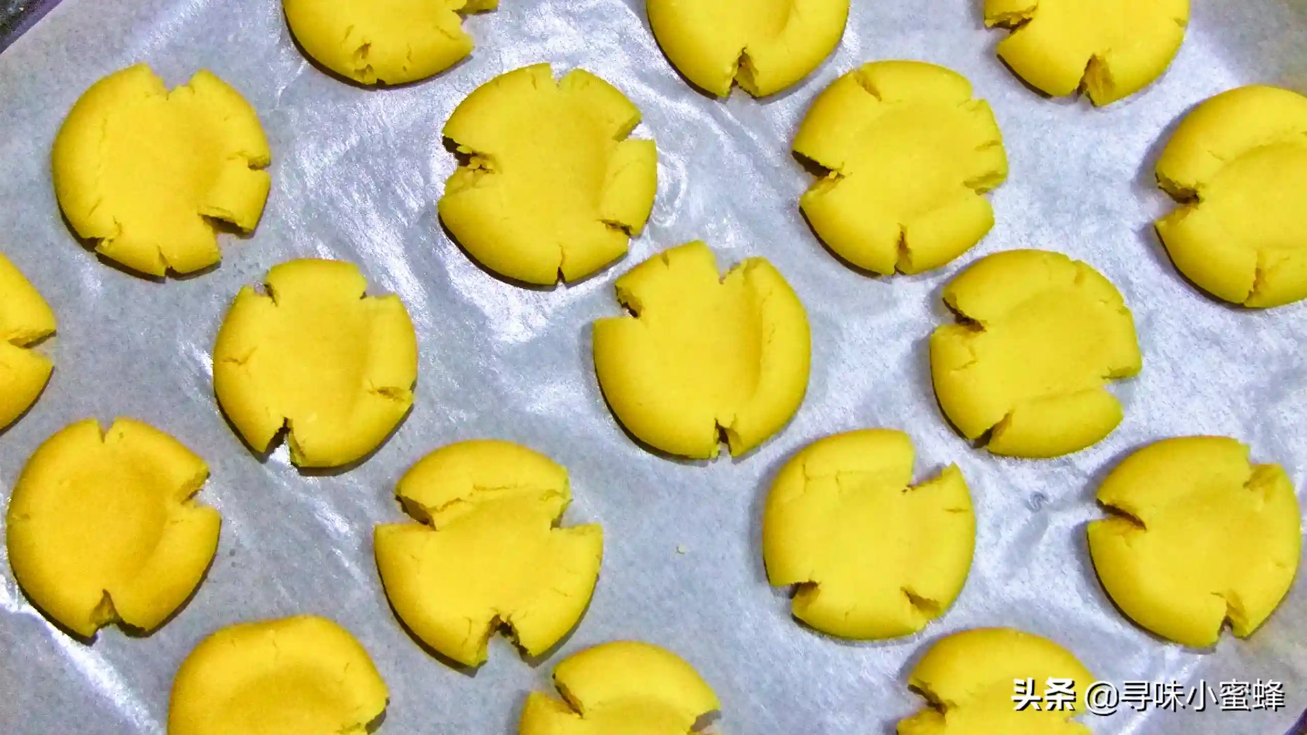 9、将揉好的面团用大拇指轻轻按扁,面团会自然裂开,形成漂亮的小花状。