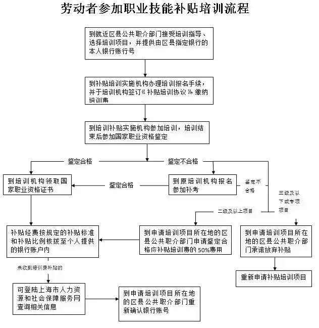 另外,5类补贴对象中的第1~4类对象,参加技师、高级技师培训项目,鉴定不合格的,还可享受鉴定合格应补贴经费的50%补贴。劳动者可到原申请培训项目的区就业促进中心办理相关手续。经区就业促进中心或区培训管理部门审核确认,补贴经费核拨至本人提供的银行账户。