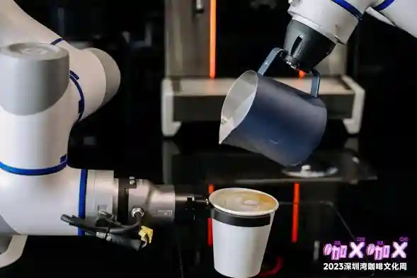 值得一提的是,本届咖啡文化周现场还有“高科技”,两台越疆CR3协作机器人配合,可自动化实现取杯、咖啡制作、咖啡拉花、出杯、清洗消毒全流程,无需人工参与即可复刻专业咖啡师的拉花手艺。众多市民围观并表示,这很“后海”,这很“深圳”。