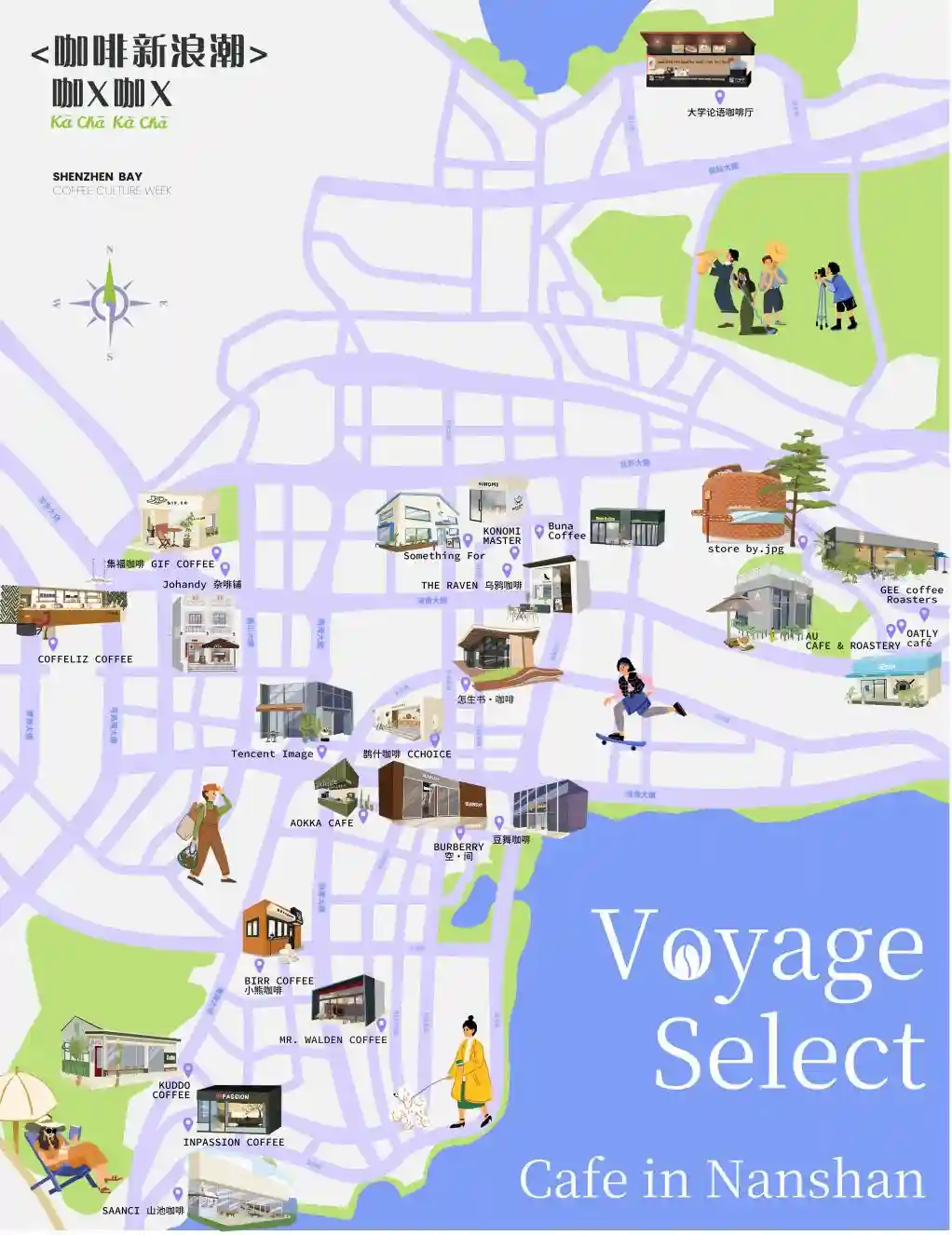 启幕仪式上,由咖啡文化周联合Voyage新旅行推出的南山咖啡特刊发布,网罗最潮最酷的深圳咖啡生活方式,了解新锐南山咖啡主理人的品位和品牌主张,一张地图带你走进藏在南山大街小巷的宝藏咖啡店。