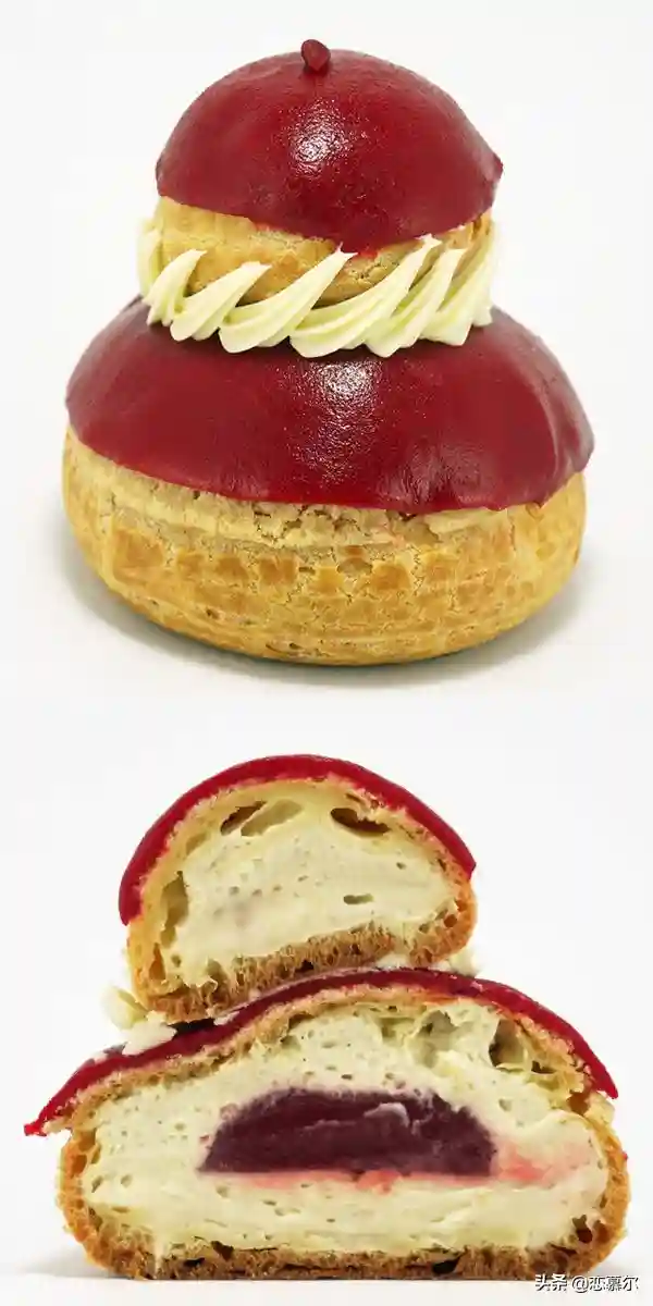 当中的一大代表就是泡芙,光是泡芙自然不会是这么引人注目,而是大名鼎鼎的修女泡芙,这是欲望和禁欲碰撞,之所以是称之为修女泡芙,完全是因为其上下的两个泡芙看起来就像是修女的罩袍,所以被称之为修女泡芙。修女泡芙用的主要是马鞭草风味的厨师奶油酱和草莓果酱。