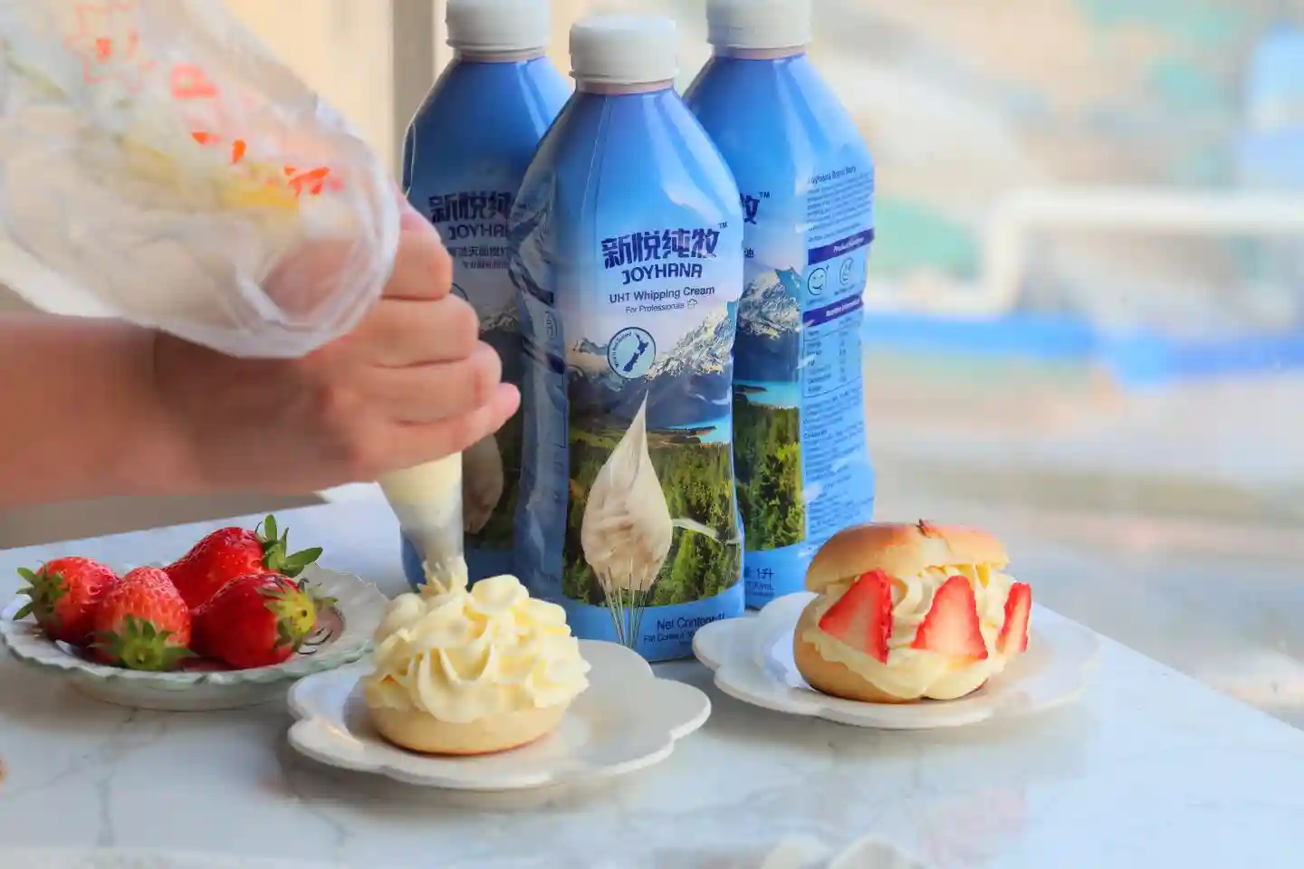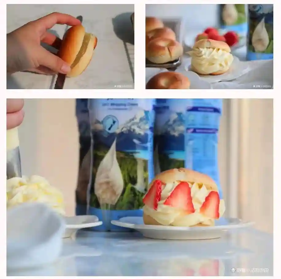 今天小法用到了新悦纯牧超高温灭菌搅打稀奶油,又香又醇,一点儿也不甜腻!加上红红的草莓锦上添花哦~