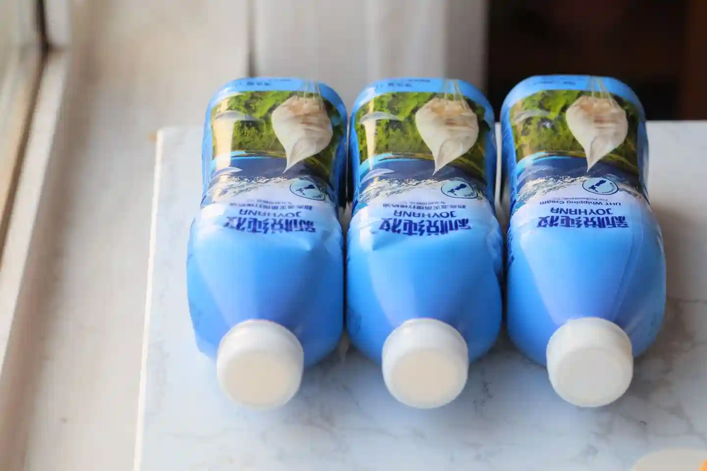 奶油的包装是瓶装的,打开⽅式很⽅便不说,⽤不完也可以随便放冰箱,不怕弄脏,也不怕密封不好!