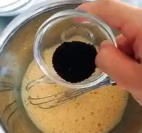 ②过筛后的低筋面粉倒进去,用打蛋器搅拌至凤尾状即可。
