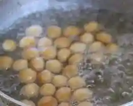 ②将面团擀平切成条状,再切成粒搓成珍珠圆子。