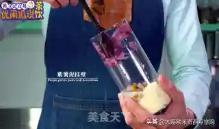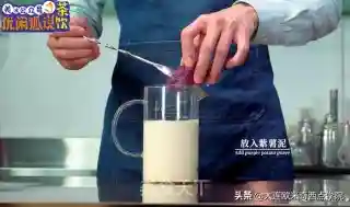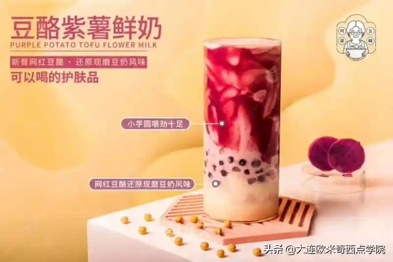 今天咱们也教教你如何做出网红流行的豆酪紫薯鲜奶。”