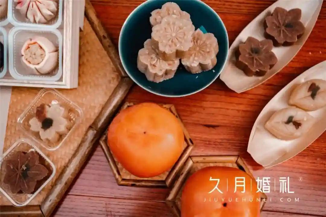 介于场地的“特殊性”,迎宾区和甜品区摆放在室外长廊,中式的建筑配上新中式的婚礼,怎么能没有传统屏风?为此我们特意“扛”来了两扇木质屏风,再配上一个中式的实木摆台,整个甜品区的“硬装”就完成了。“软装”自然是要靠甜甜的甜品糕点来充实,各色精致小巧的中式糕点,让人看了简直不知该如何入口,咬一口满是甜蜜。