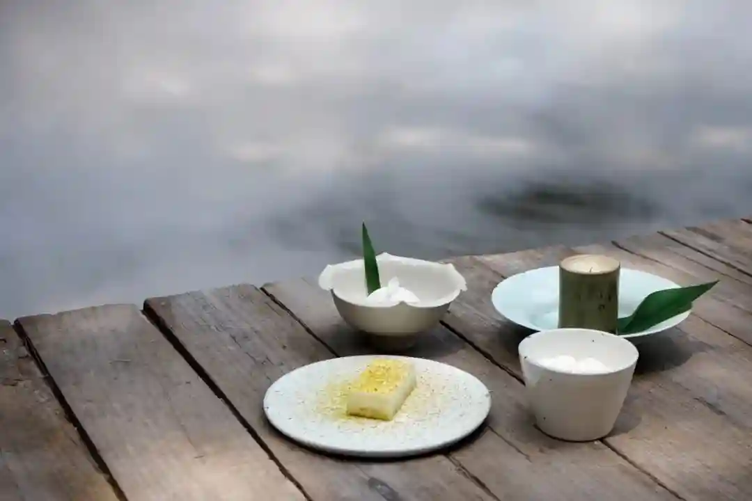 全国第10家「元古雲境」,继北京,成都、上海之后,落于深圳。元古雲境遵循“适时而食”,使用应季食材制作,餐食也以风雨四季二十四节气为名。眼下的春季食单,以艾草、燕麦、橙花、玄米茶为主,一茶一糕点。
