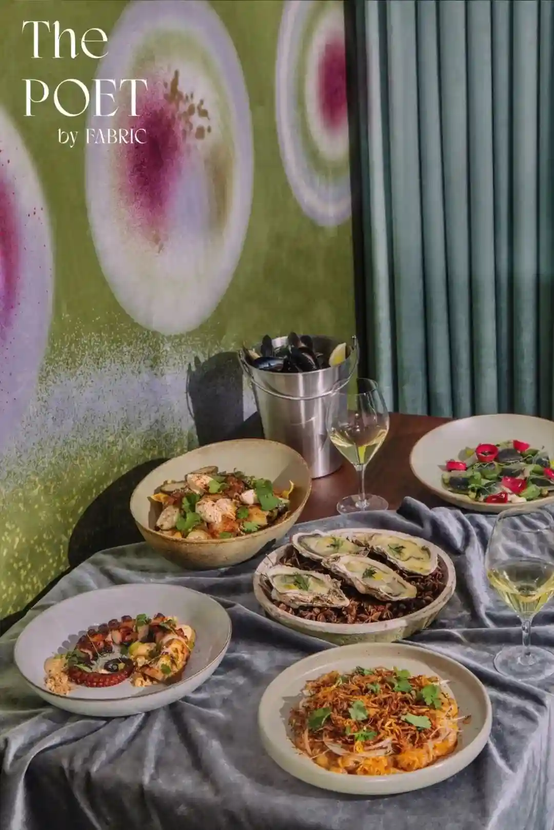 人气餐酒馆Fabric的新店,ThePOETbyFabric开来福田了。本店的独家特色“ToYourTable”,桌边调酒服务,由调酒师来到客人身边调酒。“以人的情绪做灵感,像诗人般创作鸡尾酒”,是一家以诗歌做食的餐酒馆。
