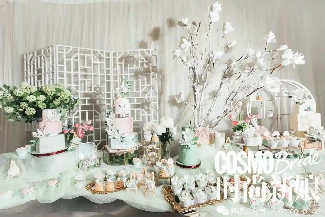 甜品师婚宴的最后一道菜品,也会成为AfterParty中,能量补给小食。这时候,丰盛的甜品台一定会成为宾客最爱光顾的区域。甜品台可以多一些甜品种类,琳琅满目的感觉,更加激发人们的食欲。