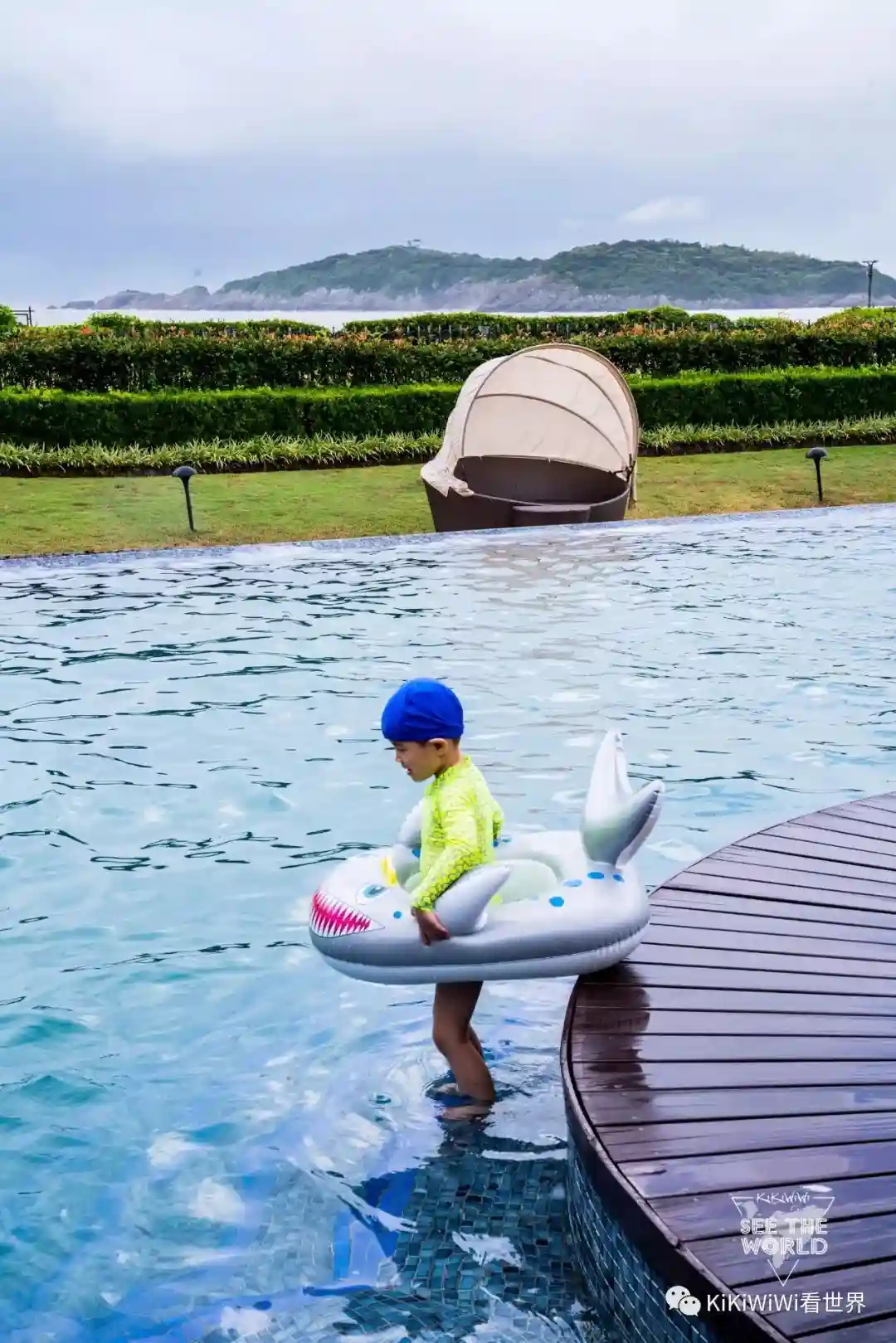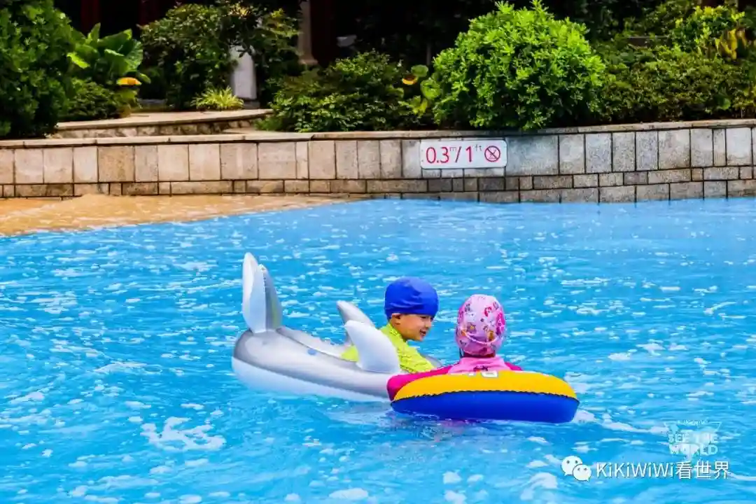 需要注意的是无论室内室外的泳池,都必须要戴泳帽。忘带的旁边有商店售卖。另外可以从那边租借儿童救生圈、漂流板等等。