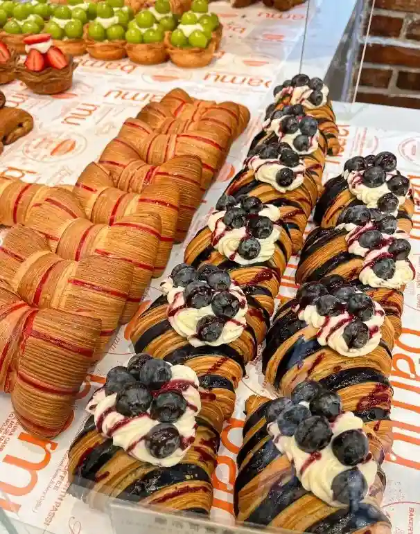 酥皮甜咸可颂也是本店特色,以超过十多不同款式和造型的酥类产品,从色香味三大特点去吸引顾客,其中以覆盆子开心果可颂和上边提到的柠檬蝴蝶结酥最受欢迎。