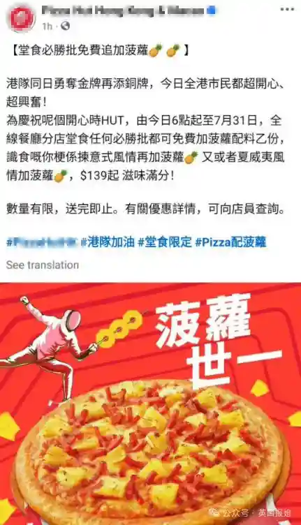 前几天,意大利击剑队输给香港不服申诉惹众怒。香港必X客接着就宣布所有披萨都加菠萝,加大加量还不加价。