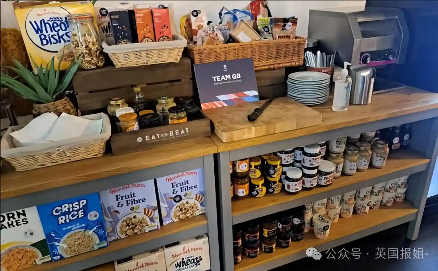 24小时供应新鲜的三明治、麦片、水果和奶制品。保证让所有英国运动员都能吃上可口的家乡饭。