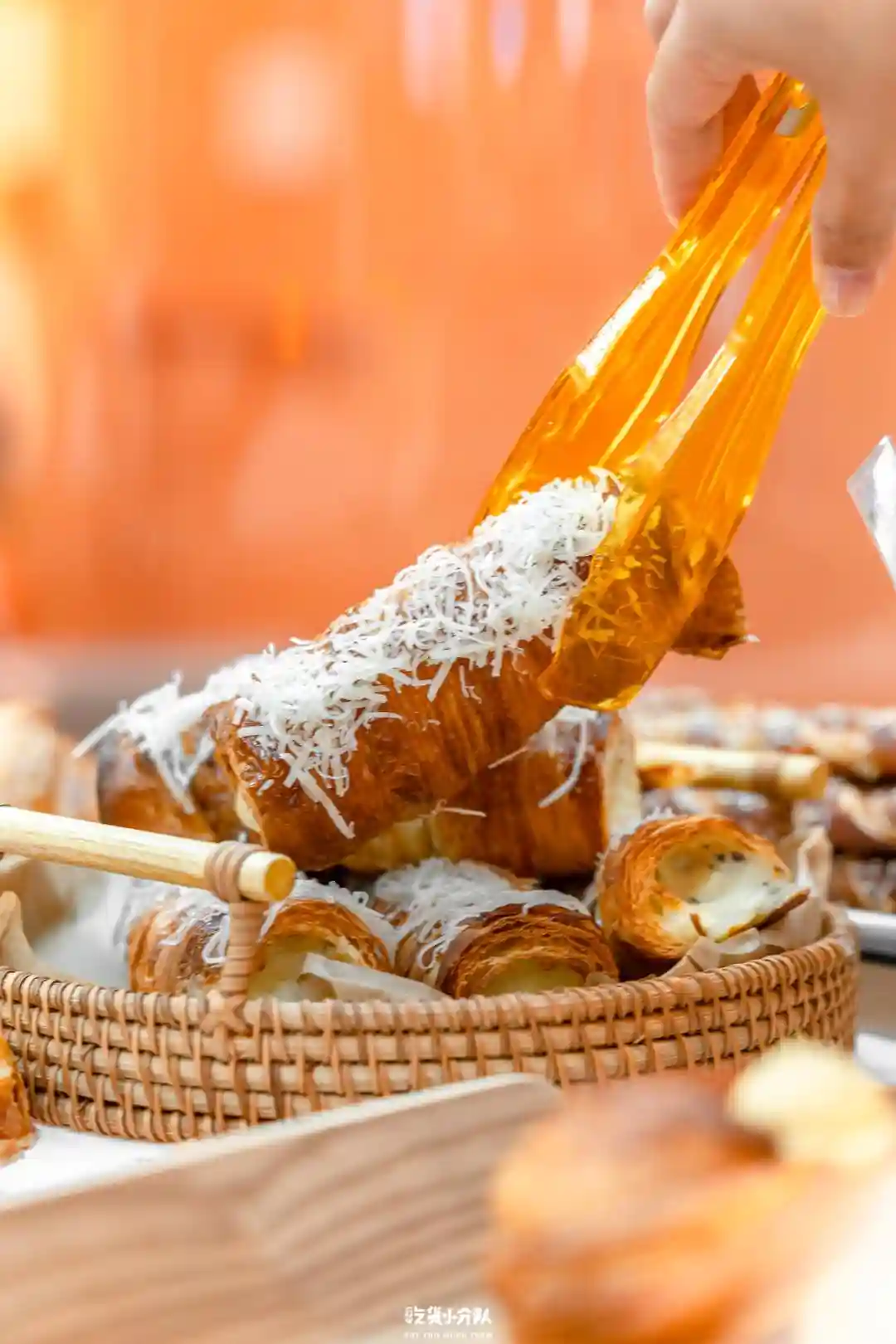 OléBakery深圳第2家门店主打起酥类,均由烘焙匠人团队手工开酥。外壳香脆、里层松软,入口的空气感,让面包脑袋无法拒绝。经烘烤的酥皮层呈金黄色的光泽,叠出酥松的层次感。