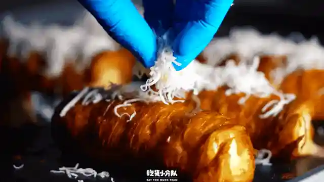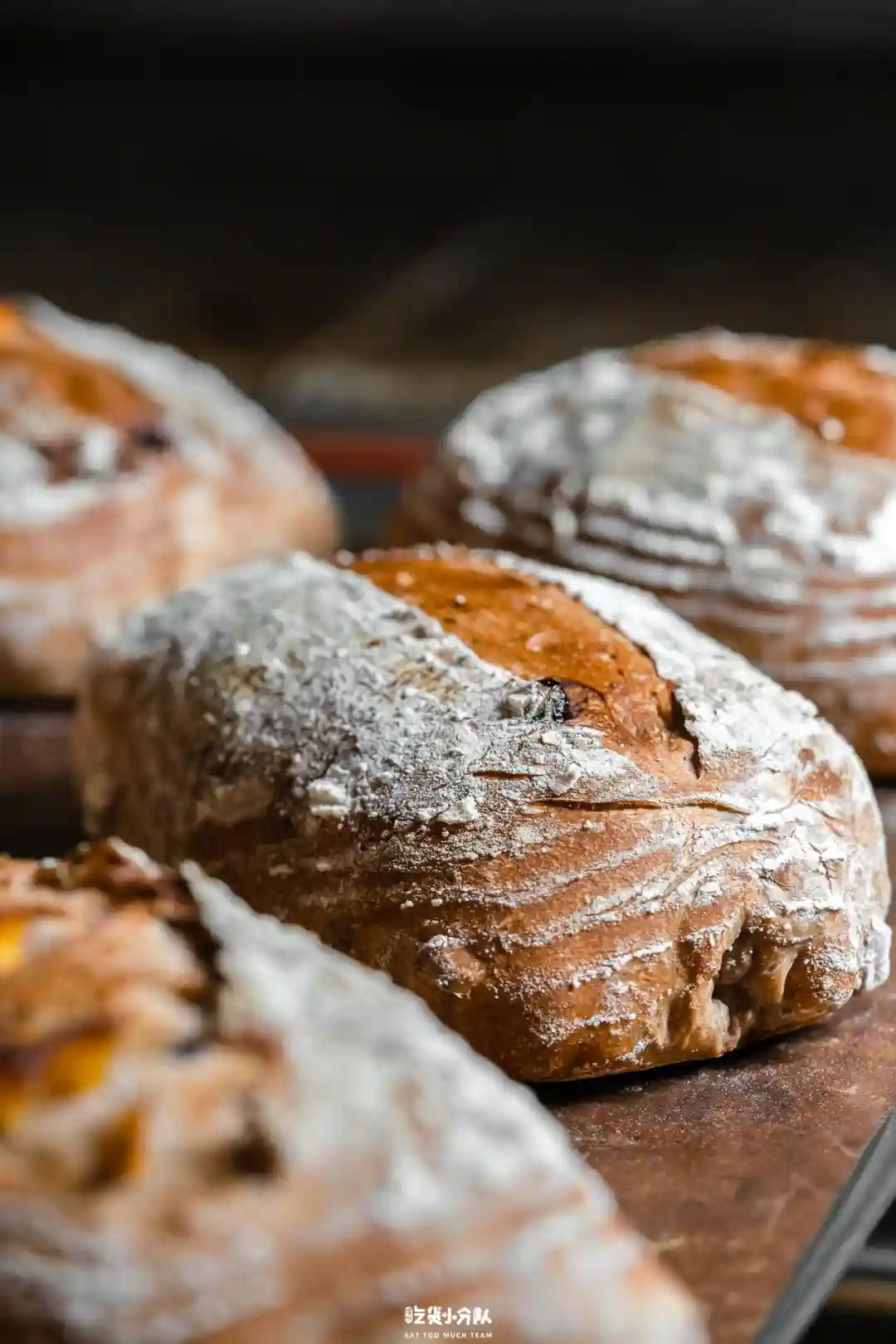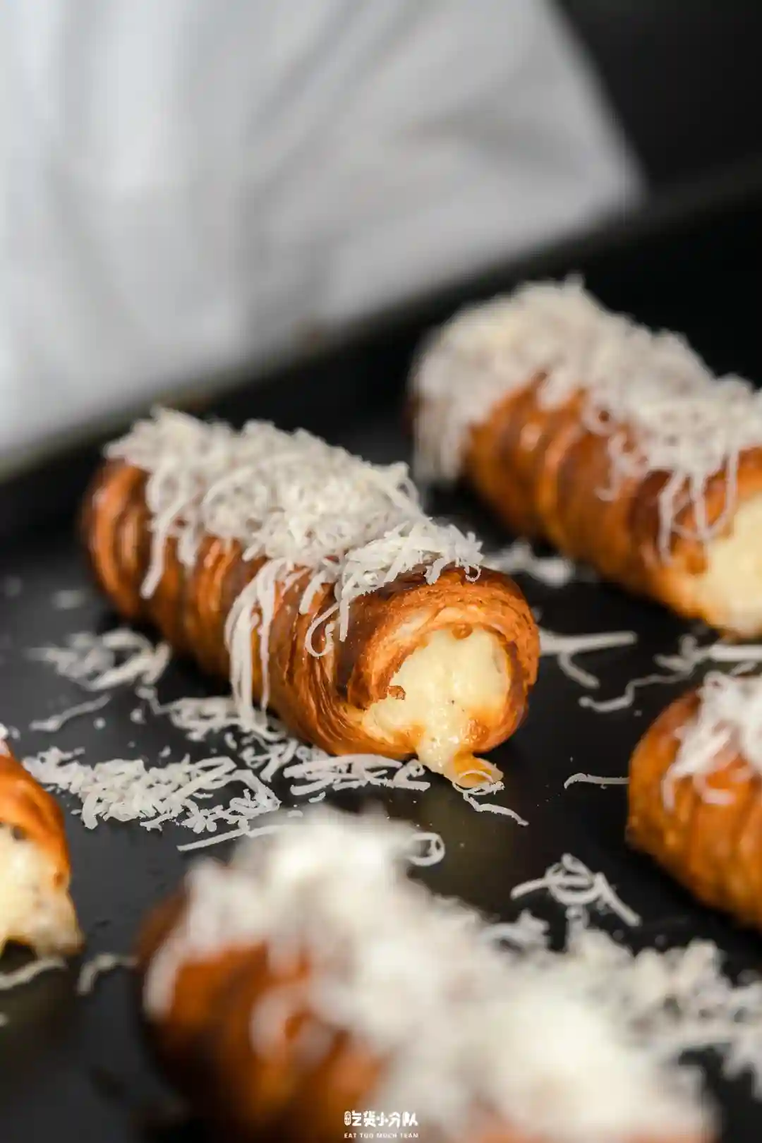 黑松露帕玛森德肠丹麦,法国大磨坊面粉融入法国诺曼底黄油,传统手工开酥,卷出层叠造型。烘烤过后加入秘制黑松露馅料,撒上满满芝士。入口香脆,咸香中带有浓郁的黑松露气息,别有一番滋味。