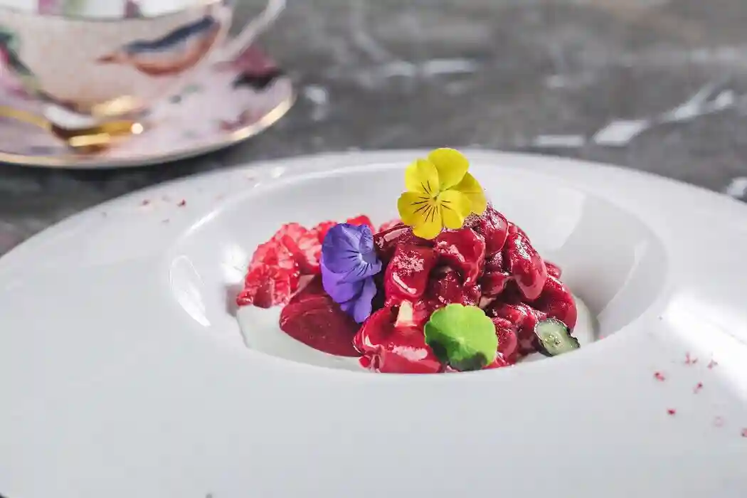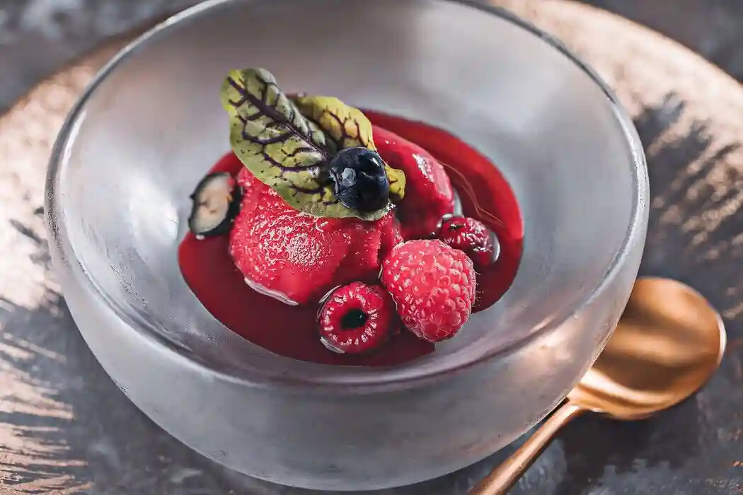 诺曼底乳酪慕斯,树莓罗勒冰霜,希腊酸奶汤底低糖蛋奶酱