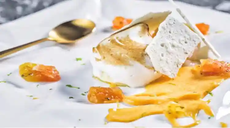 白巧克力柠檬甘纳许,粉柚冰霜,日本柚子酒酱,青柠檬蛋白霜