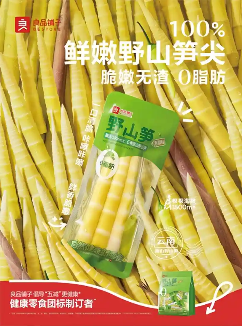 野山笋只选择云南昭通长度为8-13厘米的标准A级笋尖,传统腌制法制作的泡椒酸笋,为了实现防腐和抗氧化,大多会添加“脱氢乙酸钠”“苯甲酸钠”“冰乙酸”等多种食品添加剂。为了美味的山笋更健康,良品铺子通过提升工厂环境管理,生产过程中在低温环境浸泡调味、巴氏杀菌、酸味调控等措施,尽可能减少了防腐剂添加的数量。在全新的生产线配备了净水处理器,在保证产品稳定性的情况下,尝试不需要添加金属螯合剂(EDTA)等其他添加剂。此外,减少20%食盐添加、0脂且富含膳食纤维的野山笋,每100g仅约18大卡,吃起来更低负担。