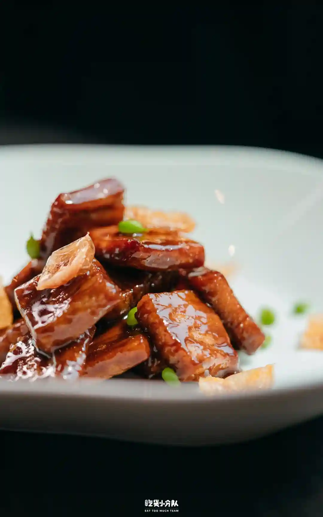 胤呈的招牌菜之一“咕噜肉”,做法很特别,不同于以往常见的形状,有种类似江浙地区的松板肉形态,外表微脆,入口香脆,黑醋汁解腻又提味。