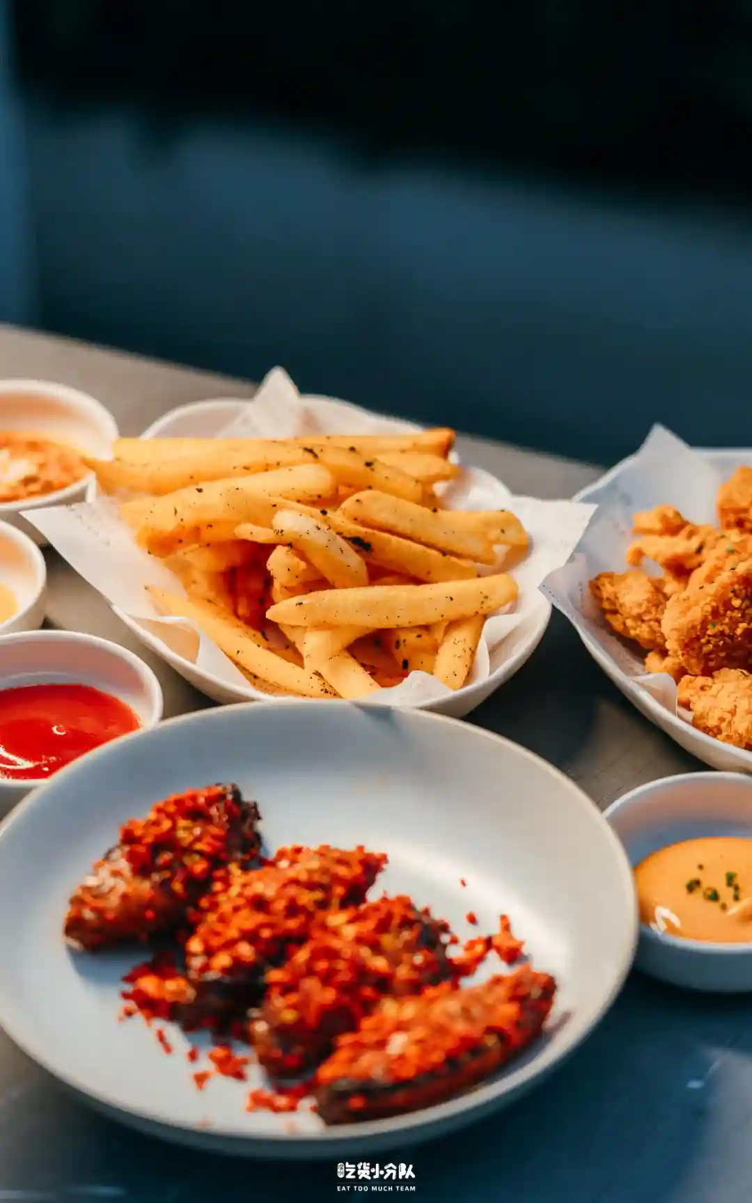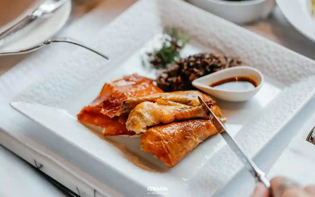 法式黄油烤清远鸡,法式烤鸡选用了清远鸡来制作,涂抹了黄油的鸡皮烤得薄脆微焦,入口酥脆,鸡肉细嫩爽口,鸡有鸡味,搭配橄榄汁又是另一番风味。