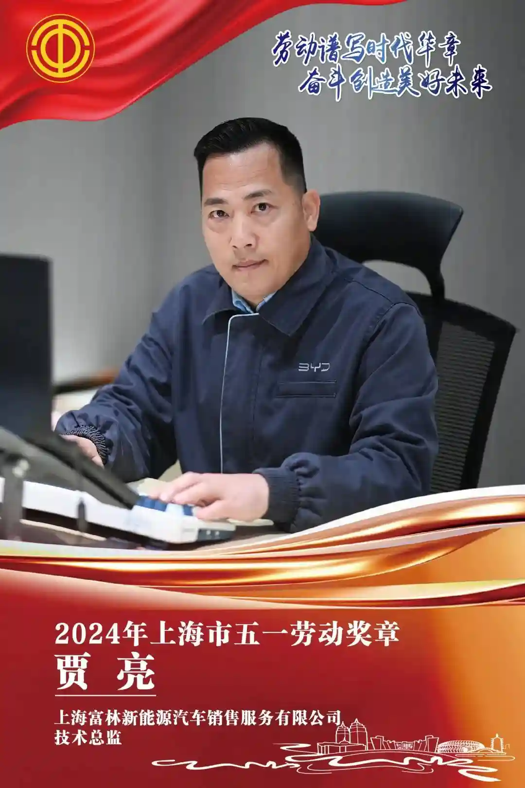 贾亮,一位在汽车维修领域辛勤耕耘27年的技术专家,凭借对汽车维修技术的无限热爱与坚持不懈,从一名普通的机电学徒成长为上海富林新能源汽车销售服务有限公司的技术总监,书写了一段属于他自己的奋斗故事。他的努力和成绩得到了社会的广泛认可,2024年,贾亮荣获上海市五一劳动奖章。