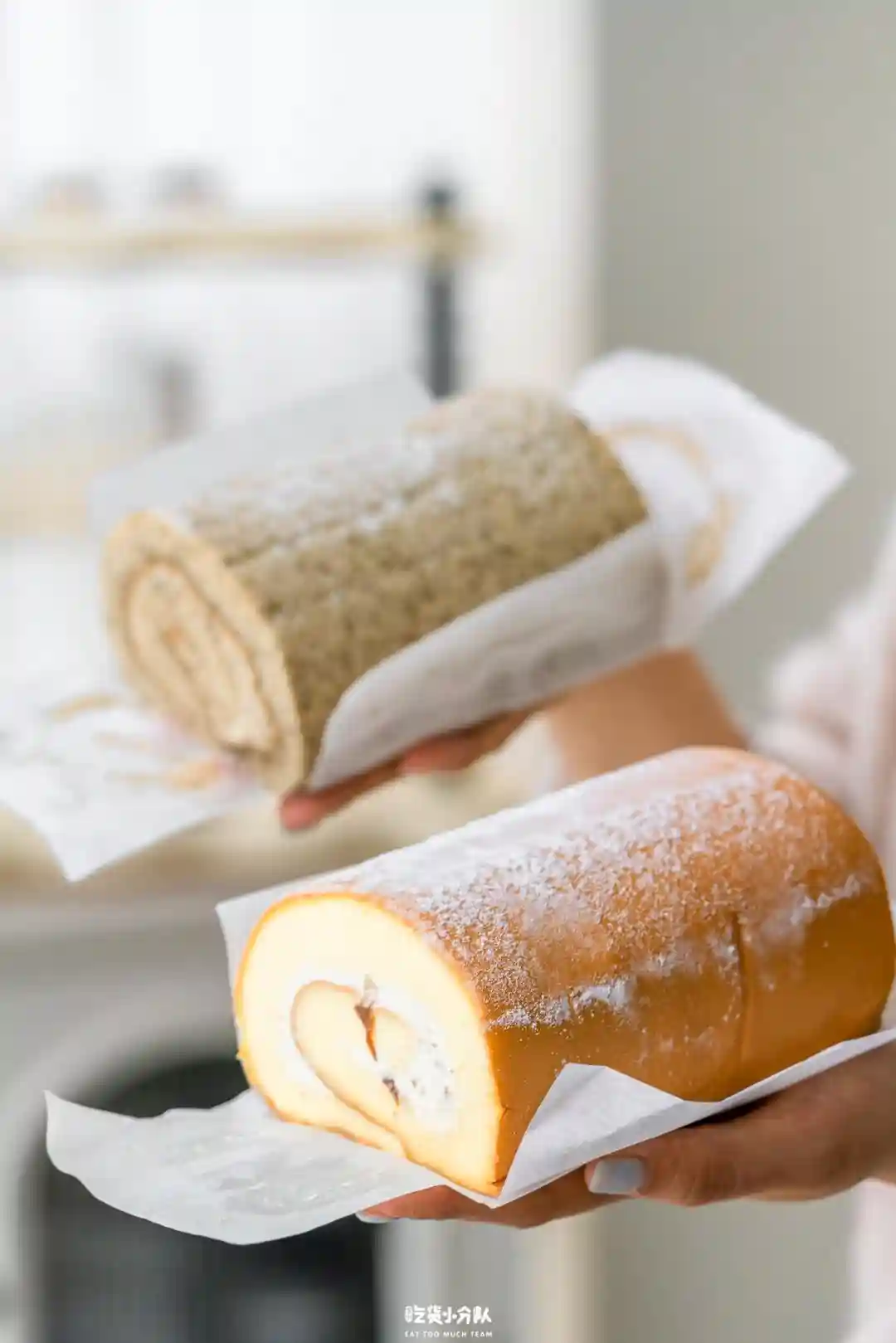 开市客的瑞士卷,在外形上已经挺吸引人的。比我手掌还大的个头,像握了两块板砖。口味也是超市中瑞士卷里不多见的:一是朗姆葡萄,在原味戚风卷着带葡萄干和奶油;二是鸭屎香,包括奶油在内都散发着淡淡乌龙茶香。不是很甜且松软,办公室有小伙伴直接一整块啃了。